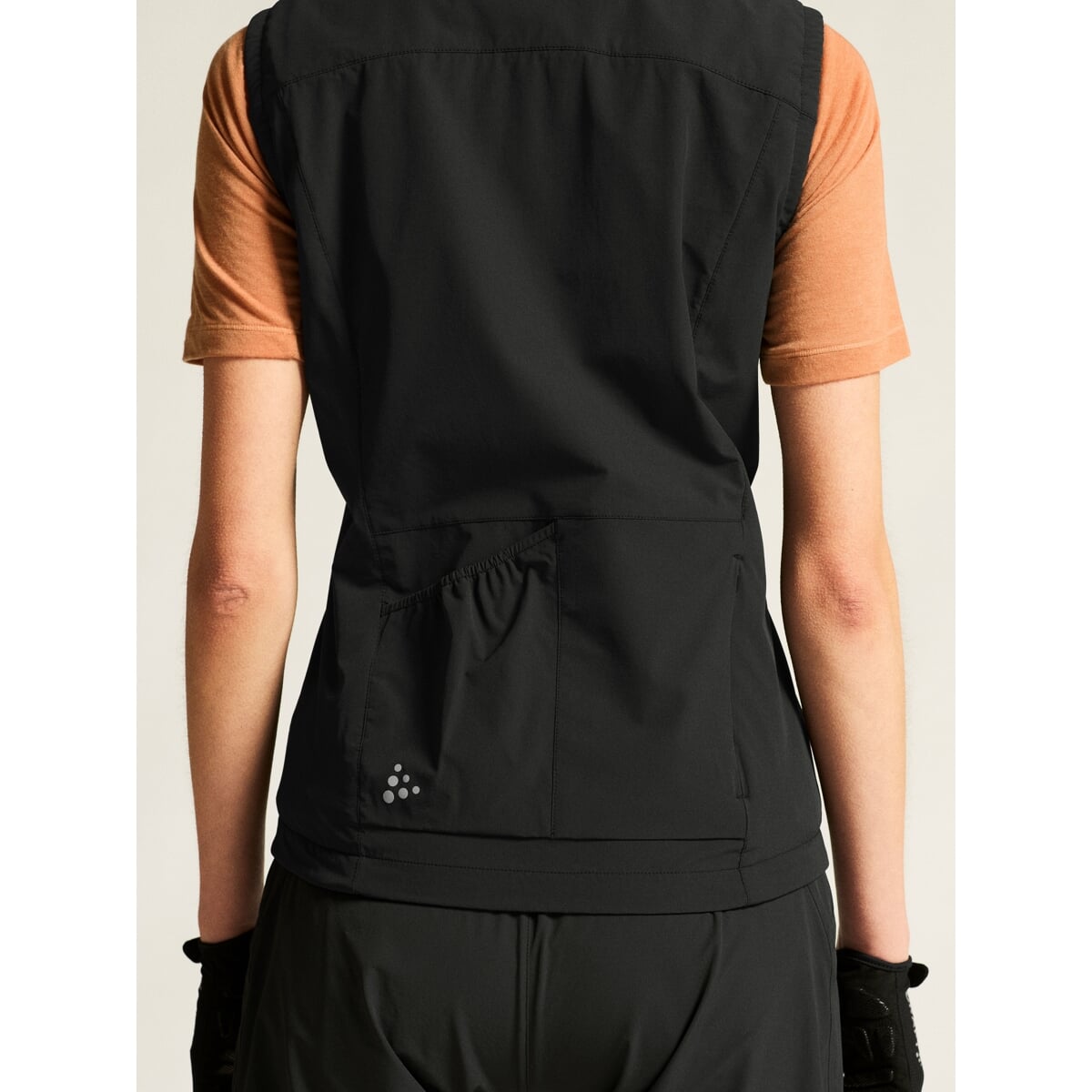 CRAFT Everyday Thermal Wind je teplá, větru odolná vesta s vodu odpudivou úpravou. Je připravena spolehlivě zahřát při ranních cestách do práce, ale i při vyjížďkách v chladném či větrném počasí. Svrchní vrstva ochrání cyklistku před větrem nebo lehkých deštěm, zatímco strukturovaný fleece z vnitřní strany dodá optimální tepelný komfort. Vesta je velmi elastická, takže se skvěle přizpůsobí postavě. Dvě větší zadní kapsy doplňuje třetí menší na zip. Z vnitřní části spodního lemu je silikonový potisk.