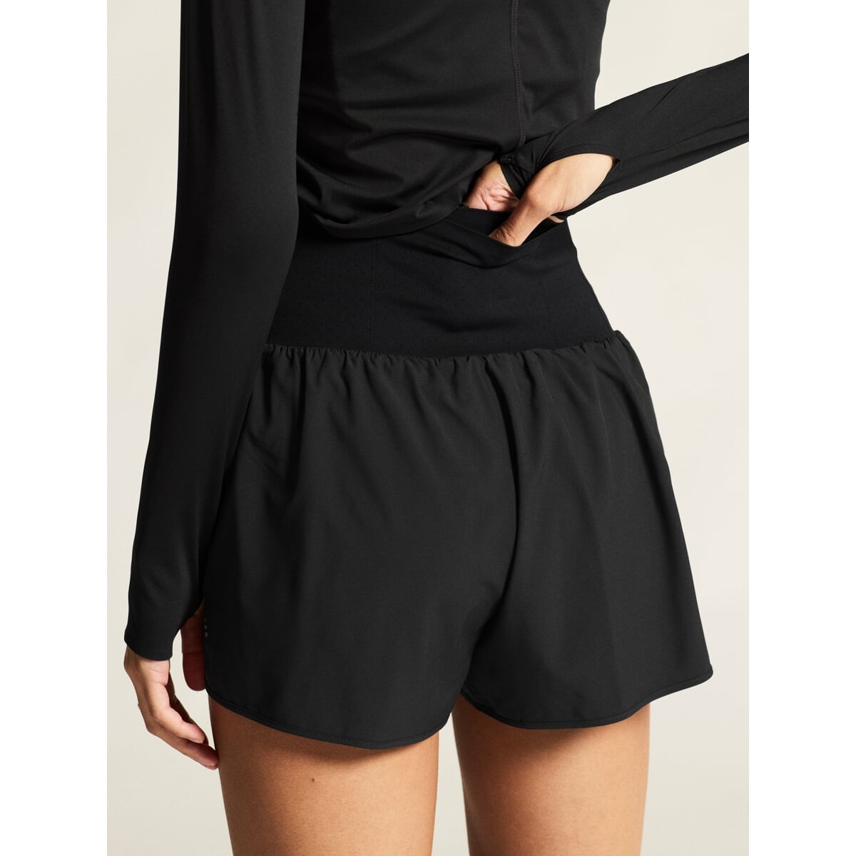 Velmi lehké běžecké šortky CRAFT Hypervent Wide zaujmou na první pohled jednoduchým, ale atraktivním designem. Jsou určeny pro ty běžkyně, které chtějí vysoce funkční šortky v širším a komfortním střihu. Kombinace funkčních syntetických vláken s elastanem zajišťuje efektivní odvod vlhkosti, optimální ventilaci a maximální komfort i ve velmi teplých dnech. Široký pas šortky skvěle usadí a navíc disponuje třemi bederními kapsami pro uložení drobností.